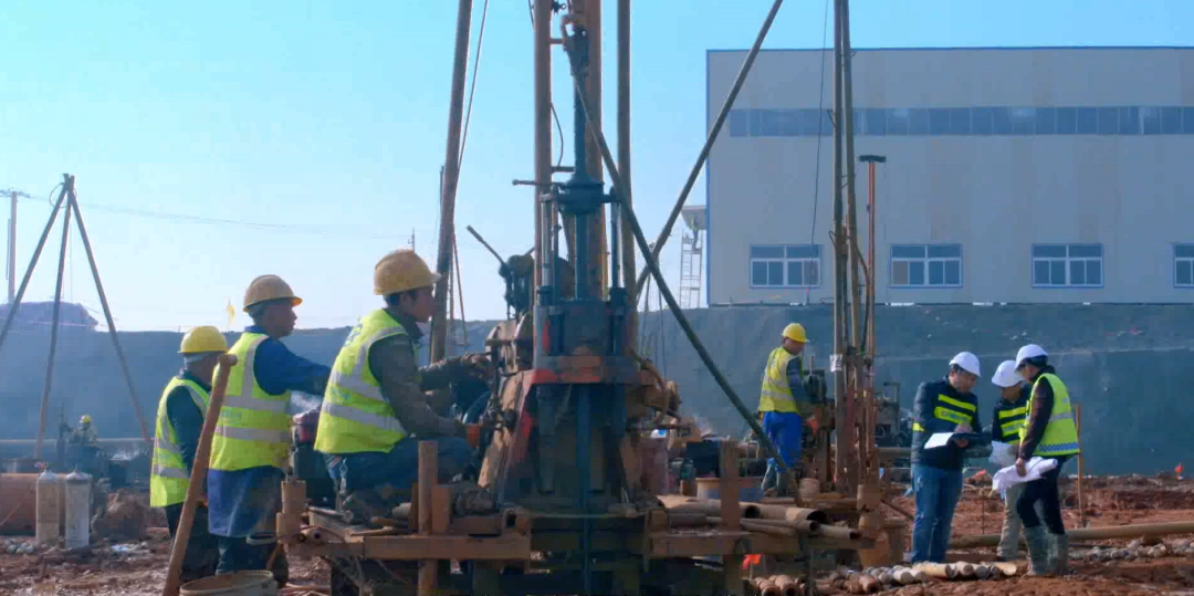 在施工勘察階段,根據(jù)業(yè)主要求,勘察需與施工同步進(jìn)行,彼時正值基坑開挖,作業(yè)面少,但項(xiàng)目任務(wù)重、時間緊。在接到業(yè)主進(jìn)場通知后,團(tuán)隊(duì)迅速召集了近百臺鉆機(jī)及相關(guān)作業(yè)人員,就作業(yè)面少問題,團(tuán)隊(duì)人員不斷與施工總包方溝通協(xié)調(diào)并制定施工、勘察方案,最終通過團(tuán)隊(duì)的拼搏努力及與總包方的密切配合,順利完成了施工勘察任務(wù)。